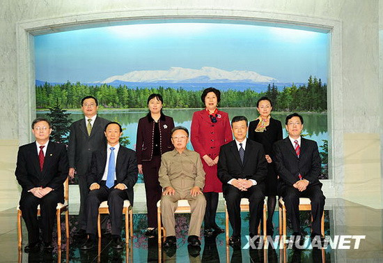 金正日首先與代表團(tuán)合影留念。他請(qǐng)王家瑞轉(zhuǎn)達(dá)對(duì)胡錦濤總書記等中國(guó)黨和國(guó)家領(lǐng)導(dǎo)人的親切問(wèn)候,并熱情地向中國(guó)人民拜年。他說(shuō),去年是朝中建交60周年,雙方圍繞“朝中友好年”所舉辦的一系列交流活動(dòng),向世人、特別是兩國(guó)年青一代展示了朝中友誼的旺盛活力。當(dāng)前雙邊關(guān)系很好,今后會(huì)發(fā)展得越來(lái)越好。