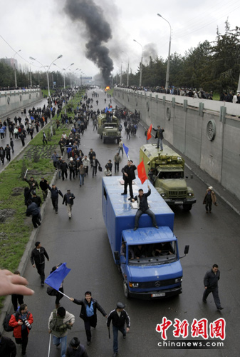 中新網(wǎng)4月8日電 當(dāng)?shù)貢r(shí)間4月6日開始,數(shù)千名吉爾吉斯斯坦反對派示威者在首都比什凱克市中心集會游行,并與防暴警察發(fā)生沖突,逐漸演變成騷亂,造成數(shù)百人傷亡。反對派扣押政府高官,占領(lǐng)部分政府機(jī)構(gòu)以及國家電視臺,并稱最終目的是要總統(tǒng)下臺,奪取國家政權(quán)。吉總統(tǒng)巴基耶夫下令全國進(jìn)入緊急狀態(tài),并宣布實(shí)行宵禁。