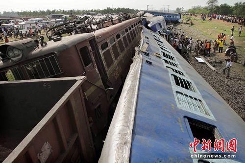 中新網(wǎng)5月29日電 當?shù)貢r間28日凌晨1時30分,在印度東部西孟加拉邦西米德納布爾附近,一輛高速行駛的旅客列車遭遇武裝組織襲擊,導致13節(jié)車廂脫軌,其中4節(jié)車廂又與對面駛來的貨運列車相撞。據(jù)當?shù)鼐奖硎,目前襲擊造成的死亡人數(shù)已達至少80人,超過200人受傷。死傷數(shù)字還可能進一步上升。