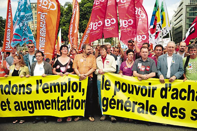 中新網(wǎng)6月14日電 據(jù)香港《文匯報》報道,法國工廠工人和公務(wù)員13日在全國游行,抗議總統(tǒng)薩科齊處理經(jīng)濟(jì)危機(jī)不力。這是法國8大工會今年第5次發(fā)起的示威,要求政府采取措施,以緩解國民受全球經(jīng)濟(jì)下滑的影響。