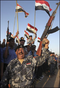 中新網(wǎng)6月30日電 據(jù)英國廣播公司報道,29日,伊拉克政府軍士兵比預(yù)定交接時間提前一天開始慶祝美國軍隊正式撤出巴格達。