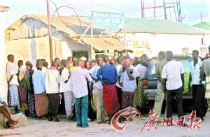 大街上坑坑洼洼、灰塵彌漫,不時(shí)可見一夜暴富的海盜駕駛豪華轎車揚(yáng)長(zhǎng)而去。這里是索馬里海盜的“老巢”,海盜活動(dòng)給當(dāng)?shù)貛砭薮笫找。全?zhèn)焦點(diǎn)是當(dāng)?shù)?4小時(shí)營(yíng)業(yè)的“股票交易所”。