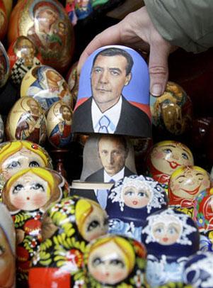 另外,梅德韋杰夫的形象還出現(xiàn)在俄羅斯傳統(tǒng)的工藝品——套娃和復(fù)活節(jié)彩蛋上。而一些精明的商家更是早早地用梅德韋杰夫搶注了伏特加的商標(biāo)。
