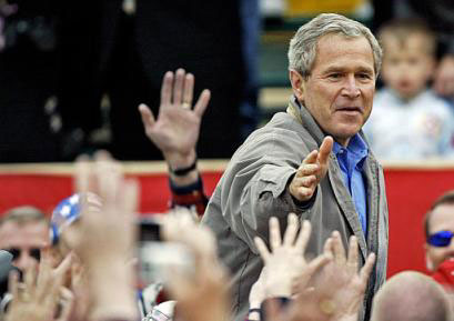 2004年5月,布什發(fā)表演講,大談虐囚事件。第一次,他把阿布格萊布念成了“阿布加瑞普”,第二次他則把這個(gè)詞讀成了“阿布加戎”,第三次他又換了種讀法,把它念成了“阿布加拉”。