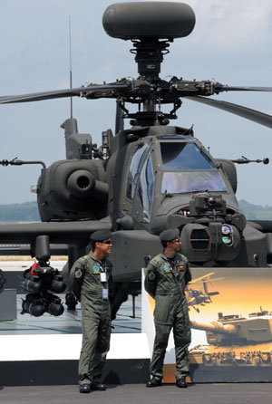 在新加坡航展上,俄羅斯沒有帶來什么吸引眼球的新產(chǎn)品。而美國則同印度防務(wù)展一樣,多家企業(yè)拿出拳頭產(chǎn)品。除已經(jīng)被世人所熟知的F-15、F-16戰(zhàn)斗機、AH-64“長弓阿帕奇”武裝直升機和V-22偏轉(zhuǎn)翼飛機等航展?屯,美國還推出了最新的第四代戰(zhàn)機F-35“閃電Ⅱ”。洛克希德-馬丁公司希望借此向亞太國家推銷500架左右的F-35,初步意向為日本、韓國、澳大利亞和新加坡四個買家。