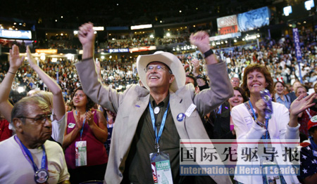 大會上的民主黨人就像搖滾音樂會中的歌迷一般手舞足蹈。