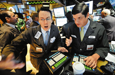 華爾街股市波動,交易員極緊張,美國政府將動用巨額納稅人金錢救市。