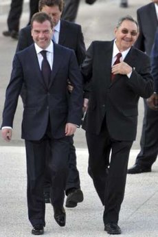 梅德韋杰夫同古巴國(guó)務(wù)委員會(huì)主席勞爾·卡斯特羅在一起。