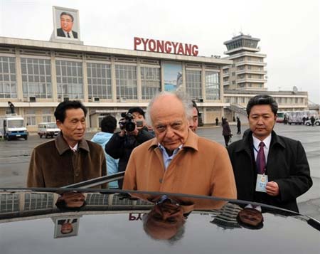 美國(guó)紐約愛樂(lè)樂(lè)團(tuán)的250多名成員于當(dāng)?shù)貢r(shí)間2月25日下午3點(diǎn)抵達(dá)平壤,開始對(duì)朝鮮進(jìn)行正式訪問(wèn)并將舉辦演出。這是朝鮮民主主義人民共和國(guó)1948年成立以后第一支來(lái)訪的美國(guó)交響樂(lè)團(tuán)。朝鮮文化省副相宋錫煥、平壤市人民委員會(huì)副委員長(zhǎng)金正植等有關(guān)官員及文藝工作者當(dāng)天在平壤順安國(guó)際機(jī)場(chǎng)熱烈歡迎紐約愛樂(lè)樂(lè)團(tuán)的到來(lái)。