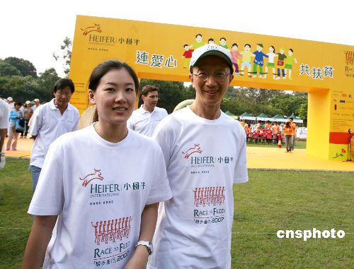 二十七日,小母牛組織香港分會(huì)主席梁錦松、小母牛組織愛(ài)心大使伏明霞夫婦參加維園舉行的小母牛[競(jìng)步善行]社會(huì)各界同心助國(guó)內(nèi)農(nóng)民脫貧慈善賽活動(dòng),為中國(guó)慈善事業(yè)出力。小母牛是一家國(guó)際非牟利組織,通過(guò)向小型農(nóng)戶提供禽畜及飼料技術(shù)的培訓(xùn),協(xié)助多國(guó)貧困家庭自力更生。中新社發(fā) 王麗南 攝