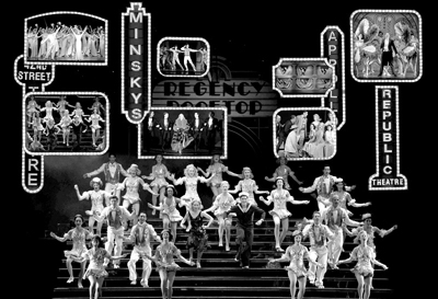 對于“百老匯”,中國觀眾已經(jīng)慕名已久,但是真正能夠看到正宗的百老匯音樂劇并不很多。以《42街》命名的音樂劇的創(chuàng)作淵源應(yīng)該是來自上個世紀(jì)30年代的同名好萊塢歌舞影片,表現(xiàn)42街上的年輕人在參加百老匯音樂劇演員選拔中發(fā)生的故事,一名默默無聞的女孩在音樂劇演員選拔和演出中展露才華,因為偶然的機會而一夜成名的故事,是一部真正的揭示百老匯幕后故事的音樂劇。