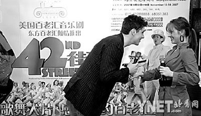 作為第五屆北京國際舞蹈演出季的特邀節(jié)目,音樂劇《42街》將于11月13日在北展劇場亮相。很多人都有個疑問,百老匯音樂劇中的踢踏舞與《大河之舞》的踢踏舞有何不同?10月26日,《42街》的主要演員在記者面前展示了兩種踢踏舞的不同,隨著男女主角克里斯蒂恩和查爾斯“秀”出的《42街》開場曲,讓記者了解到演員的實力和《42街》的魅力。女主角扮演者克里斯蒂恩對記者說:“我的藝術(shù)經(jīng)歷與劇中女主角的經(jīng)歷真的是很相像,這個戲?qū)懙木褪俏覀兊纳,所以演起來很有感覺!