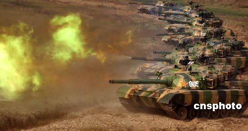 11月1日,“鐵拳-二00七”實(shí)兵檢驗(yàn)性演習(xí)進(jìn)入戰(zhàn)斗實(shí)施階段,被譽(yù)為中國(guó)“鐵軍”的參演部隊(duì)濟(jì)南軍區(qū)某機(jī)步師演練了火力準(zhǔn)備、沖擊突破、抗敵逆襲、分割圍殲等內(nèi)容,并進(jìn)行了實(shí)打?qū)嵄菥,展示其王牌部?duì)的威力。中新社發(fā) 曾憲平 攝