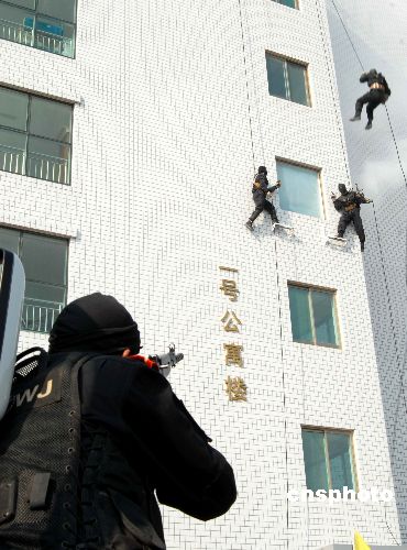 組圖:山東濰坊公安機關舉行反恐演練(2)