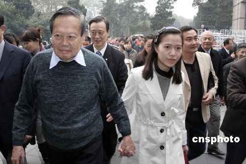 11月12日,著名物理學(xué)家、諾貝爾獎(jiǎng)得主楊振寧攜夫人翁帆回到故鄉(xiāng)安徽合肥,準(zhǔn)備參加首屆僑界精英安徽發(fā)展論壇大會(huì)。中新社發(fā) 張婭子 攝