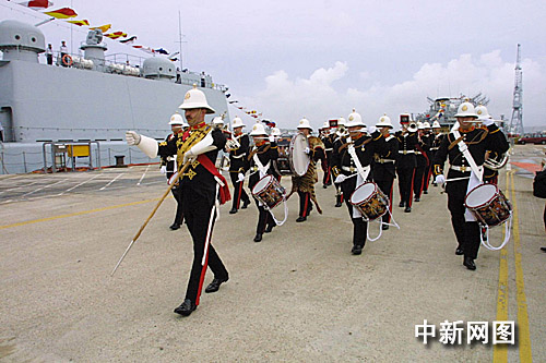 2001年8月23日至11月16日,“深圳號”導(dǎo)彈驅(qū)逐艦和“豐倉”號綜合補給艦組成艦艇編隊出訪德國、英國、法國和意大利等歐洲四國,11月10日,深圳艦歸國途中經(jīng)停香港。