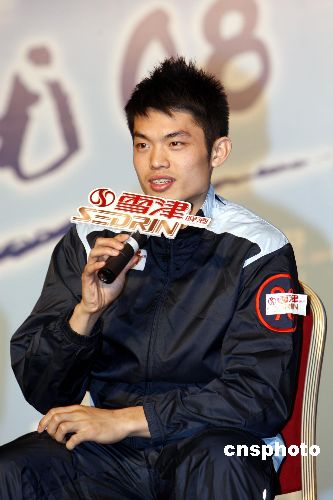 12月14日,某啤酒品牌在北京簽約世界冠軍李小鵬、肖欽、林丹和李永波為代言人,在新聞發(fā)布會上,幾位冠軍暢談奧運。中新社發(fā) 杜洋 攝