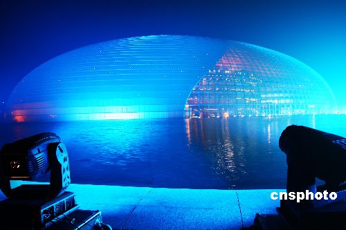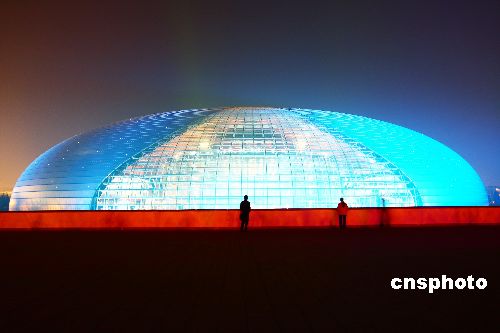 12月20日,中國國家大劇院周身,被布置完畢的燈光照射出了變化多端的顏色。隨著國家大劇院首個演出季開幕盛典的臨近,營造燈光效果的設施基本就位。據悉,本次開幕國際演出季將從2007年12月22日持續(xù)到2008年4月6日,期間將有78個劇目、180場精彩演出在這里隆重上演,其中三分之一為國外劇目,涵蓋了歌劇、舞劇、音樂會、話劇、民族戲曲五大藝術門類,預計接納觀眾30萬人次。中新社發(fā) 鄭雄增 攝