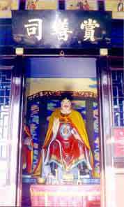 賞善司:本殿中間供奉的是善判官,兩邊站著的是功曹和書記。他們的主要職責(zé)是記錄陽間的善事,為判官提供裁量的依據(jù)。