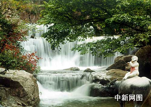 鴛鴦瀑:興地村王如貴家貧無子,有女名引弟至孝。是年如貴患病而亡,妻傷悲過度,臥病在床。女引弟上綿山采藥時,忽遇一惡狼追趕,被一男子奮身相救。引弟謝道:“承蒙公子相救,敢問家住何方,姓什名誰?男子答道:吾之家境,姑娘日后便知,現(xiàn)在采藥要緊。”言畢便幫姑娘采藥。日子一久,兩人便產(chǎn)生了愛慕之情。是月望日,那男子又幫引弟在此采藥,二人纏綿難舍,不覺月上樹梢。忽有一老人從溝內(nèi)走出說:“你二人前世姻緣未滿,現(xiàn)世當為鴛鴦相伴。何不就此月明之下,讓老夫做媒,永結連里。”二人聞言,知是月下老人,連忙拜謝,老人隱沒無蹤。從此二人便結為夫妻。不知過了多久,這里便出現(xiàn)了一雙鴛鴦。后凡有青年男女上去一坐,便可喜結(jié)良緣,終生相伴。
