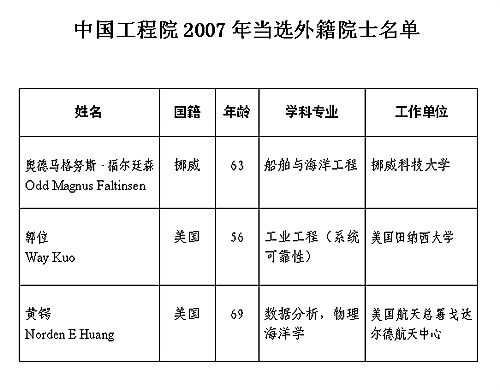 中新網(wǎng)北京12月29日電(記者 孫自法)中國(guó)工程院29日在北京宣布,該院2007年增選產(chǎn)生33名新院士。以下為新院士名單。