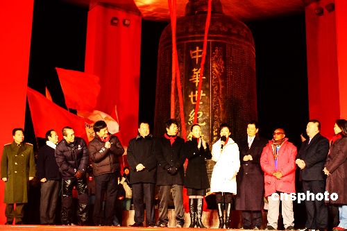 12月31日晚,“喜迎奧運(yùn) 祝福北京”大型主題活動(dòng)在中華世紀(jì)壇舉辦,多位全球華人熟悉的嘉賓在零點(diǎn)時(shí)刻為北京敲響二00八的新年鐘聲,宣告北京正式跨入奧運(yùn)年。千里之外的香港時(shí)代廣場迎新年活動(dòng)通過衛(wèi)星與北京連線互動(dòng),共同慶祝奧運(yùn)年的到來。中新社發(fā) 鄭雄增 攝