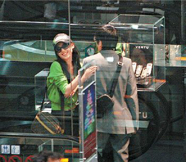 港媒稱,較早前,赴港出席完活動(dòng)的黃圣依未有即時(shí)回內(nèi)地,選擇與經(jīng)理人男友留港購物。當(dāng)日下午5時(shí),架著墨鏡,戴上過時(shí)的Von Dutch貨車帽,穿上草綠色長袖衫背著6600元LV Reporter袋的黃圣依,與穿上灰色西裝的楊子在專賣極貴價(jià)手機(jī)的Vertu專門店中挑選電話,只見Eva對(duì)店內(nèi)一部賣53000元(港幣,下同)的法拉利1947限量版手機(jī)愛不釋手,不時(shí)跟男友研究鍵盤,又以肩膀不斷磨蹭男友,希望男方付錢買下,可惜,黃圣依最后都空手而回。