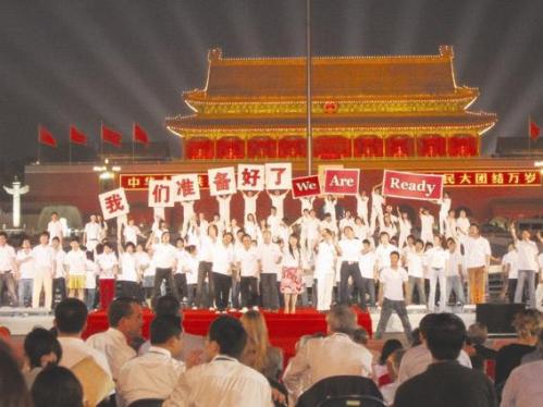 9)奧運(yùn)會倒計(jì)時(shí)一周年天安門廣場大型演出活動,《明橋體育》總編和時(shí)代華語廣播電臺臺長作為休斯頓及美南地區(qū)華文媒體代表應(yīng)邀出席現(xiàn)場觀禮----2007年8月8日是北京奧運(yùn)會倒計(jì)時(shí)一周年,北京奧組委當(dāng)晚在天安門廣場舉行大型文藝演出和慶;顒。休斯頓及美南地區(qū)兩家華文媒體的負(fù)責(zé)人,《明橋體育》總編輯勞荊和時(shí)代華語廣播電臺臺長美齊應(yīng)北京市僑辦邀請,作為貴賓出席了現(xiàn)場的觀禮活動以及多項(xiàng)紀(jì)念和慶;顒。
