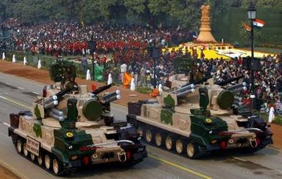 1月26日,印度在閱兵式上展示武器系統(tǒng)。