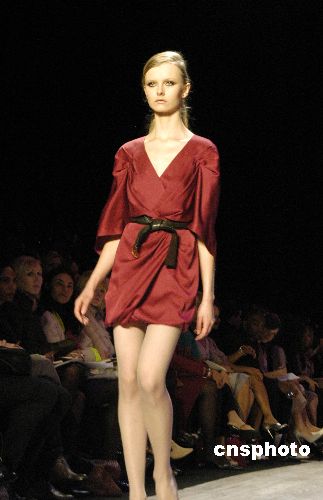 紐約時(shí)裝周二00八秋季系列展2月1日開(kāi)幕。當(dāng)天設(shè)計(jì)師Max Azria旗下品牌BCBG推出的女裝秋季系列。中新社發(fā) 鄧悅 攝