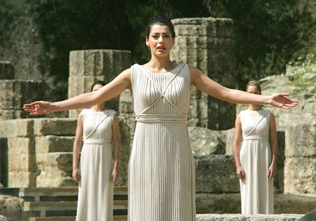 在現(xiàn)代奧運會中,奧林匹克圣火是人類價值的重要象征,也是人類與火息息相關的重要表現(xiàn)。正如當年宣布“神圣休戰(zhàn)”的傳令兵,今天的火炬手,手持奧運會火炬,傳遞奧林匹克圣火,鼓勵全世界為了奧運會放下武器。選擇奧林匹亞作為奧運會火炬接力取火儀式的舉辦地,象征著奧林匹克的偉大傳統(tǒng)和古代奧運會和現(xiàn)代奧運會之間緊密連接和奧運圣火的純潔。到目前為止,一共舉辦了16屆夏季奧運會火炬接力活動。所以,在2008北京奧運上女祭司將不僅僅是把奧運圣火和火炬在世界范圍內傳播,更是把奧運精神從奧林匹亞帶向世界。