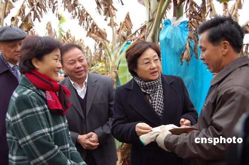 2月3日上午,中國國務(wù)院僑辦主任李海峰女士一行到遭受冰凍災(zāi)害的廣西南寧隆安縣浪灣華僑農(nóng)場,考察災(zāi)情,慰問受災(zāi)歸僑。李海峰還代表國務(wù)院僑辦和海外僑胞,向該農(nóng)場災(zāi)民捐贈三萬元人民幣。此前2月2日晚,國僑辦“僑愛溫暖行動”向廣西捐贈一百萬元人民幣。中新社發(fā) 劉萬強(qiáng) 攝