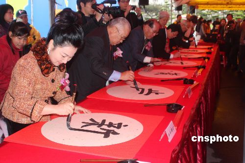 圖:臺(tái)灣舉辦新年開筆大會(huì) 三千人參加書法揮毫