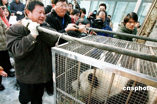 2月3日,大熊貓“蘇蘇”在蘇州動(dòng)物園新居與游客見(jiàn)面。當(dāng)天下午4時(shí)許,國(guó)寶大熊貓“蘇蘇”從徐州乘火車抵達(dá)蘇州,并在蘇州動(dòng)物園內(nèi)開(kāi)始為期一年的展出,吸引了許多游客先睹為快,為姑蘇市民新春佳節(jié)增添喜氣。中新社發(fā) 蘇秀 攝