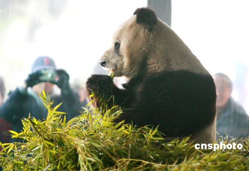圖:大熊貓“蘇蘇”抵達(dá)蘇州與游客見(jiàn)面