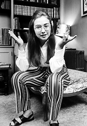 在上世紀(jì)60年代,希拉里仍是年輕大學(xué)生時(shí),卻留了一頭禾稈草般的厚重長發(fā),加上一雙土土的涼鞋,令她看上去像一位大嬸,而且她又穿了一條夸張的“豎條長褲”,感覺像滑稽小丑,爆笑效果一流。對于這張“經(jīng)典倩影”,希拉里依然力撐到底:“這不是我的錯(cuò)!60年代流行這一套!”