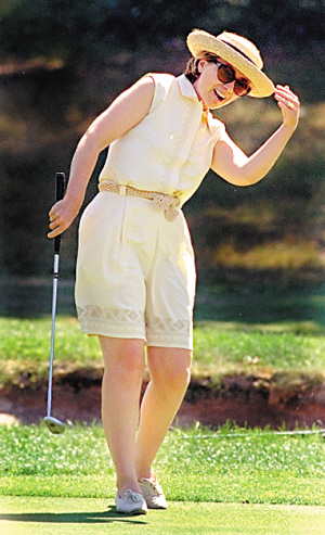 1993年某天,希拉里去打高爾夫球,穿上淺黃色無袖上衣加短褲,麒麟臂和蘿卜腳表露無遺。