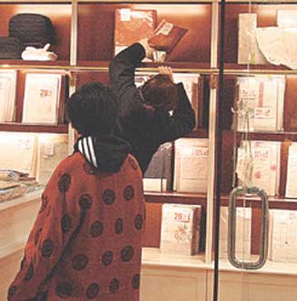 年二十九下午3時(shí),束著馬尾,帶著黑框眼鏡,打扮樸素的鄭秀文與助手大嬸,在中環(huán)太子大廈內(nèi)一間售賣床上用品的店鋪揀選寢具,可能店內(nèi)貨品大多顏色鮮艷,所以看得Sammi心花怒放,不時(shí)拉著店員東指指西指指,恨不得將所有艷紅寢具統(tǒng)統(tǒng)捧回家一樣。其后,Sammi對其中一品牌的粉紅大花花床單套裝愛不釋手,未待店員將包裝袋拆開便立即將內(nèi)里的枕頭套取出來細(xì)看。