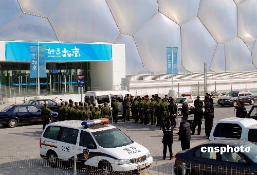 圖:北京“水立方”賽前加強安檢