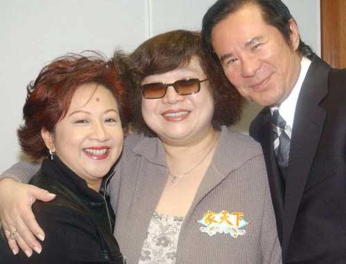 2003年,香港藝員沈殿霞三月五日接受香港新城電臺(tái)“家天下”訪問(wèn)。圖為沈殿霞與主持人薛家燕(左)、該臺(tái)總監(jiān)甘國(guó)亮(右)興高采烈一起拍照。中新社發(fā) 錢興強(qiáng) 攝