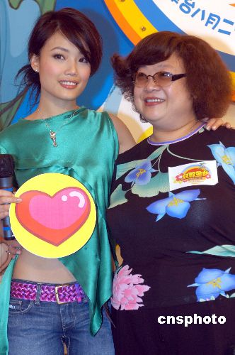 歌星容祖兒2005年7月21日在香港出席無(wú)線電視《兒歌金曲頒獎(jiǎng)典禮2005》記者會(huì),并與擔(dān)任頒獎(jiǎng)典禮大會(huì)司儀的沈殿霞會(huì)上合影。中新社發(fā) 鄧慶樂(lè) 攝