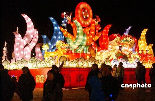 2008沈陽(yáng)迎春燈會(huì)在沈陽(yáng)世博園舉行,本屆燈會(huì)展出北京奧運(yùn)、鼠年吉祥、世界遺產(chǎn)、京劇臉譜、童話王國(guó)、沈陽(yáng)地標(biāo)、傳統(tǒng)花燈、書法藝術(shù)八大主題系列,展線長(zhǎng)3400米,花燈數(shù)量超過3000盞,花燈品類達(dá)到80多個(gè),其中以“北京奧運(yùn)”為主題的組燈受到市民的“追捧”。中新社發(fā) 羅瀾 攝