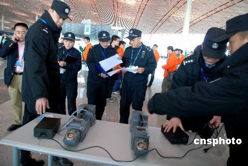 2月23日,北京首都機(jī)場T3航站樓順利完成了啟動前的最后一次綜合演練。北航、聯(lián)大、物資等高校的大學(xué)生志愿者和機(jī)場工作人員參加了此次演練。此次演練內(nèi)容主要測試的是T3航站樓正常的進(jìn)、出港旅客流程,中轉(zhuǎn)旅客流程,國際航班國內(nèi)段,涉及違禁品、危險品等問題行李的處置及要客警衛(wèi)保障工作測試。中新社發(fā) 楊慧峰 攝