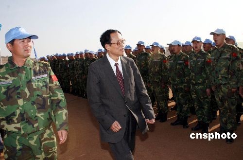 2月26日,中國政府達爾富爾問題特別代表劉貴今來到中國維和多功能工兵分隊慰問,中國維和工兵分隊是首個非洲之外國家派遣的維和部隊,他們近日已搬進位于蘇丹南達爾富爾的營地。中新社發(fā) 李鵬 攝
