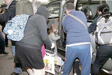 Bjork的女兒在保鑣護送下上車。
