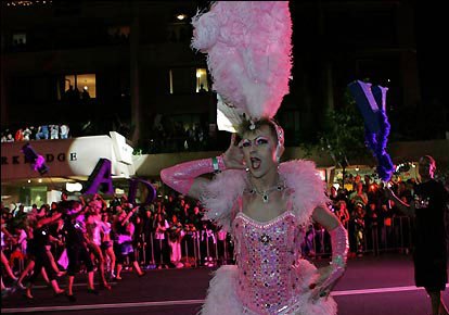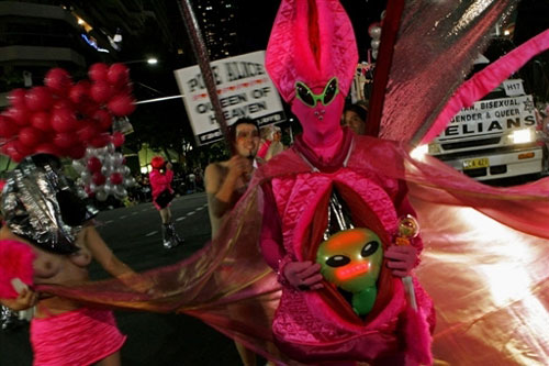150輛花車、移動舞臺將悉尼市中心的牛津街裝點成了一條彩河。悉尼的同性戀大游行是世界上規(guī)模最大、最生動的同性戀游行活動之一。