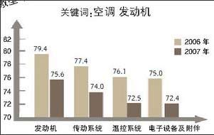 初始質(zhì)量各環(huán)節(jié)滿意度均低于2006年,其中“發(fā)動機”和“剎車系統(tǒng)”滿意度降幅最大。