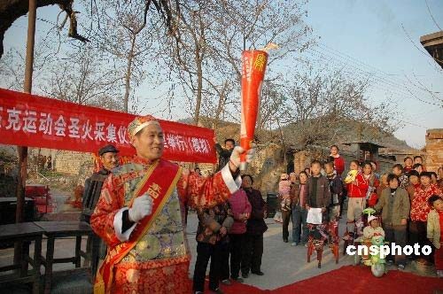 圖:山東農民模擬奧運圣火采集過程(2)