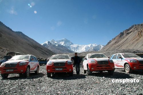 圖:中國登山隊圣火傳遞車隊抵珠峰大本營