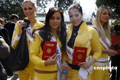 國(guó)際旅游小姐在少林寺模仿中國(guó)武術(shù)(3)